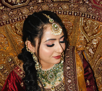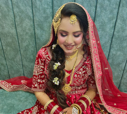 Flawless, long-lasting bridal makeup enhancing your natural beauty, ensuring you look radiant and elegant on your special day.